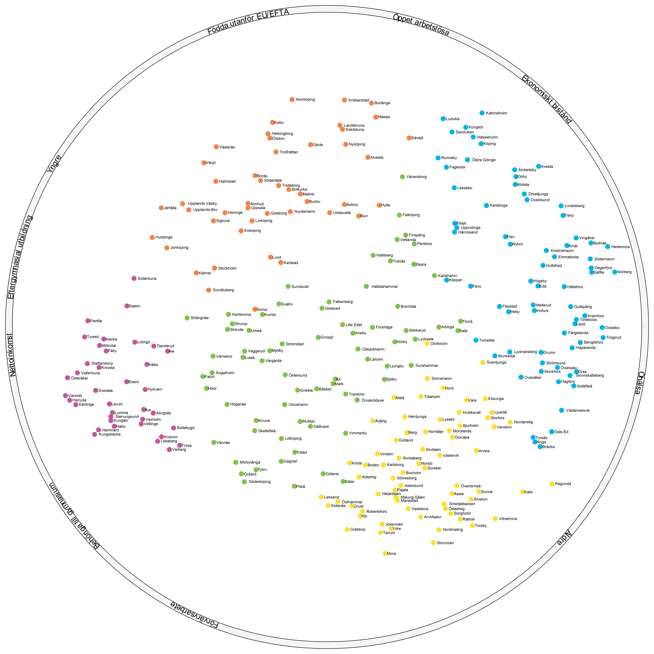 Utöver att årligen sätta fokus på Sveriges kommuner och hur dessa förhåller sig till varandra i en nationell kompass gör vi också, på uppdrag av kommuner, regioner och finansiella samordningsförbund, kompasser på delområdesnivå som våra beställare sedan använder som ett verktyg i sitt utvecklingsarbete.